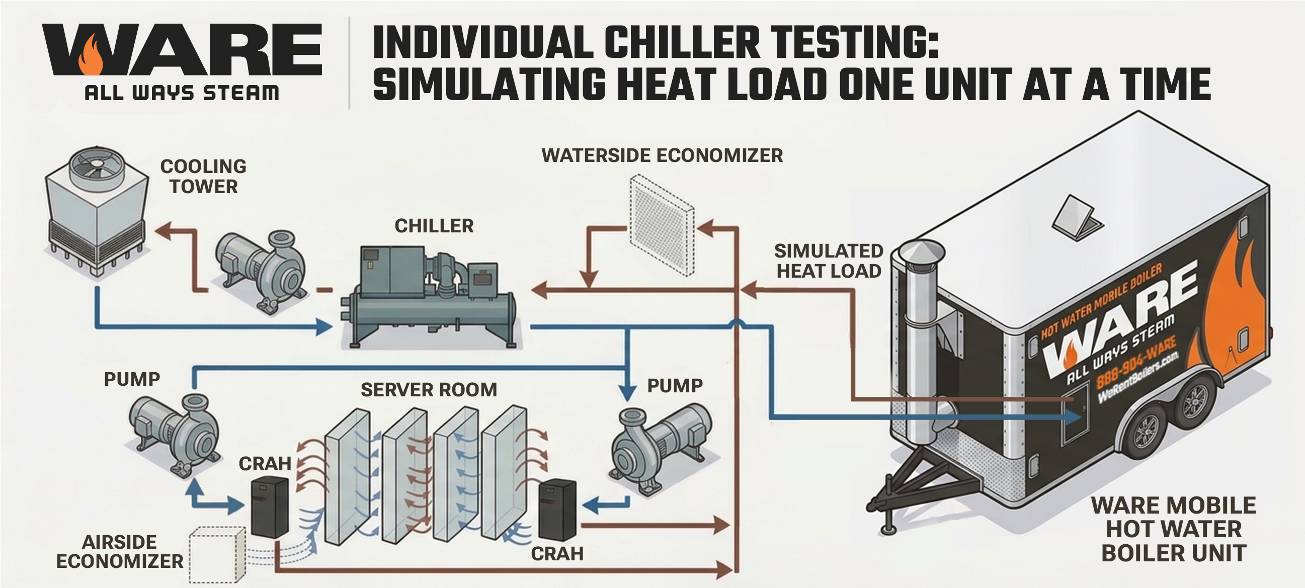 WARE provides large-scale data center chiller testing using mobile hot water rental boilers or